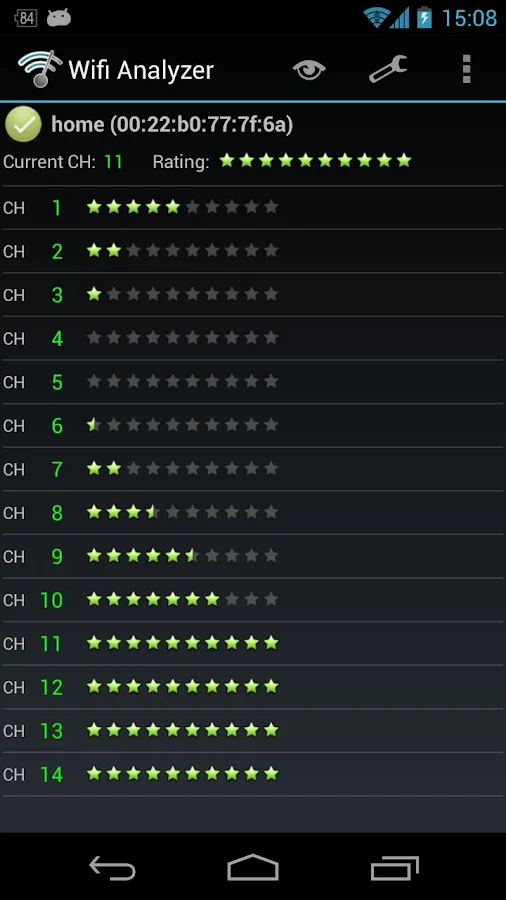 Esto es para ver el canal que no tiene interferencias, como podéis ver el canal 11,12,13,14 son los mejores a sin que elegiremos unos de esos 4.
