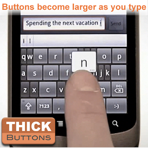 A primera vista, ThickButtons parece otro de muchos teclados para Android; normal y corriente... hasta que comenzamos a usarlo. Por medio de un motor de predicciones bastante bueno, esta aplicación reconoce la siguiente palabra o posibles palabras que vamos a escribir, y nos ayuda a escribirlas a base de hacer más grande en la pantalla la siguiente letra a introducir. Así, si quiero escribir "casa", después de pulsar "C", la aplicación aumentará el tamaño de la "A".